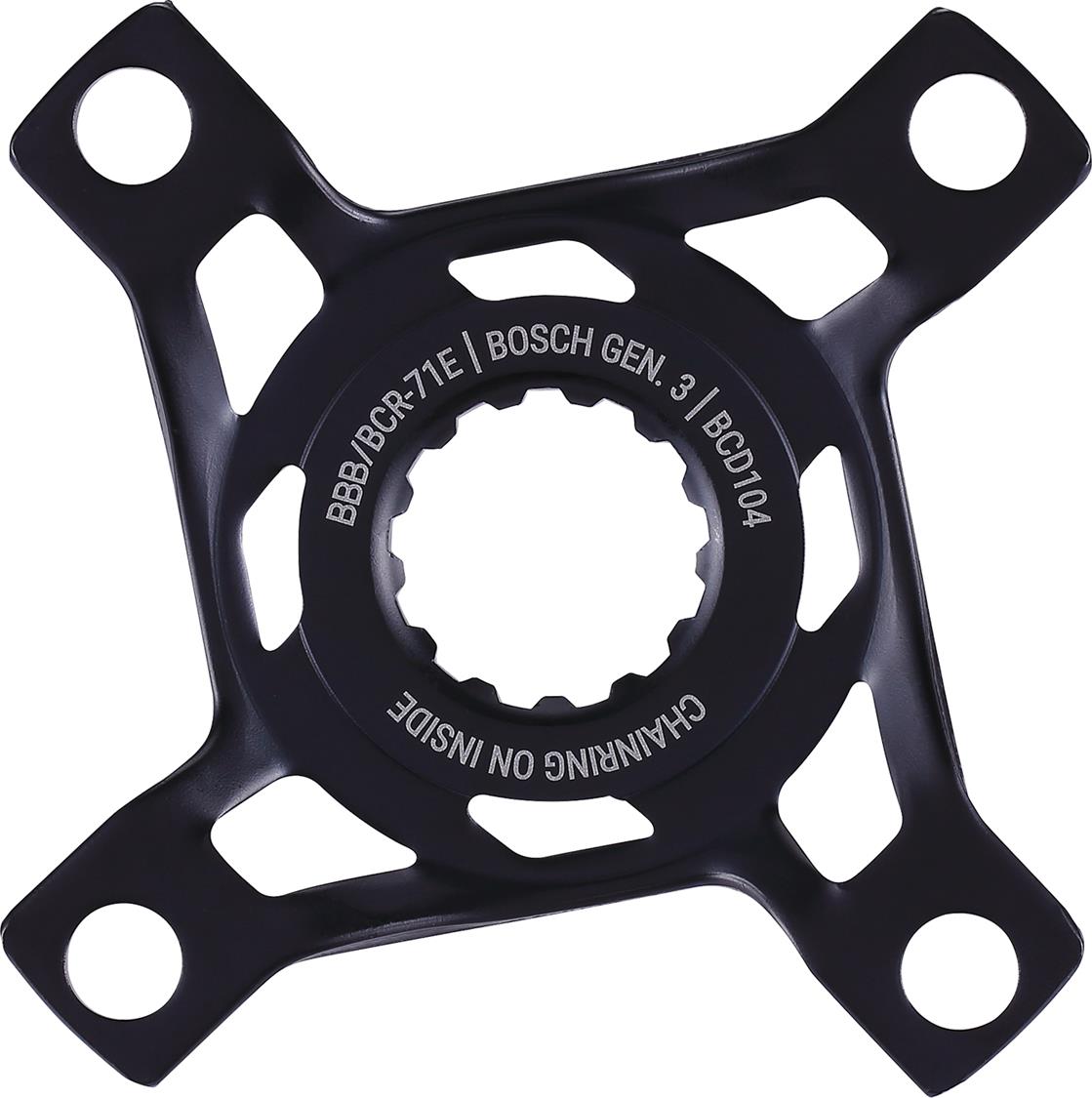 Upgrade your e-bike with the E-bikeMount chainring spider. Tailored for Bosch gen. 3, it pairs with any 4-arm chainrings (BCD 104mm) and boasts a 52mm chainline, enhancing efficiency. Crafted from robust steel, it guarantees long-lasting performance.