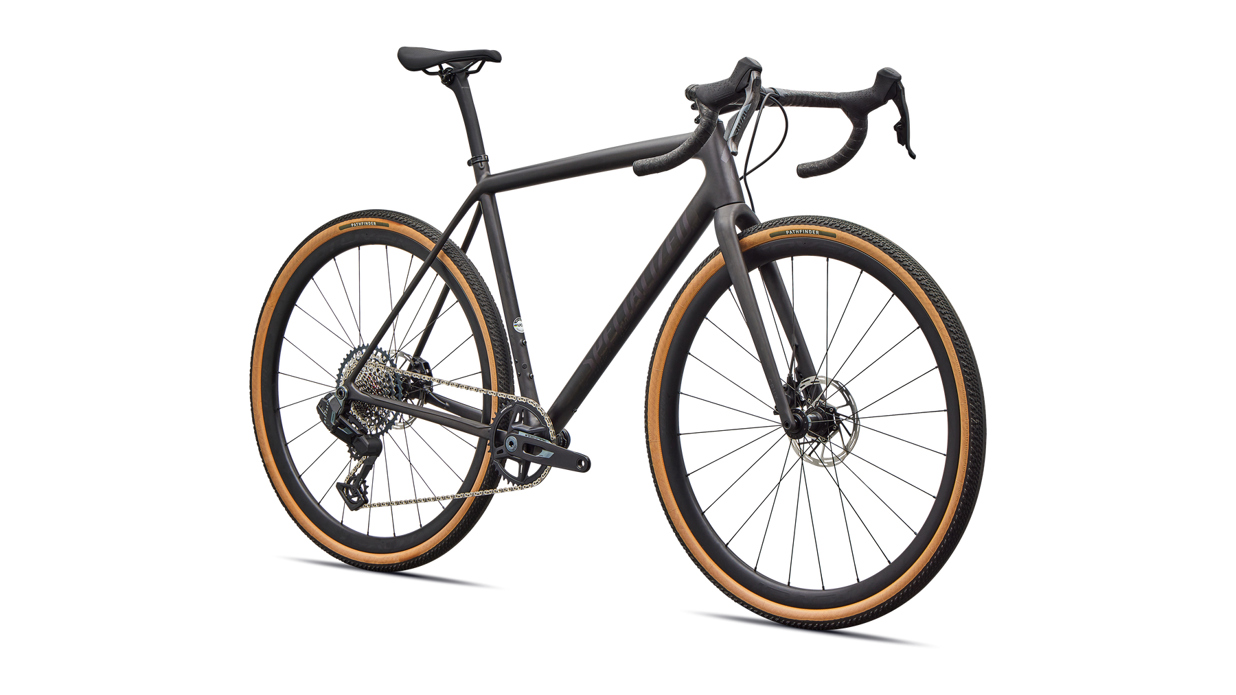 This Crux Expert comes spec'd with all-new SRAM Rival XPLR AXS for effortless braking, lighter weight, with massive 13 speed gear range, lightweight and durable Roval Terra C Disc wheels, and 2Bliss Ready, 700x40mm Pathfinder Pro tires that hookup over nasty terrain.
